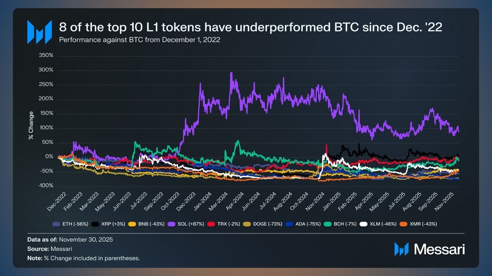 Out of the current $3.26T total crypto market cap, BTC alone holds $1.8T ~ 55% of the entire space. About $830B for other L1s like $ETH.X ( Ⲡ1.13% ) , $SOL.X ( ⟠3.08% ) , $XRP.X ( ⟠4.78% ) BNB, SUI, AVAX, etc.