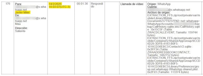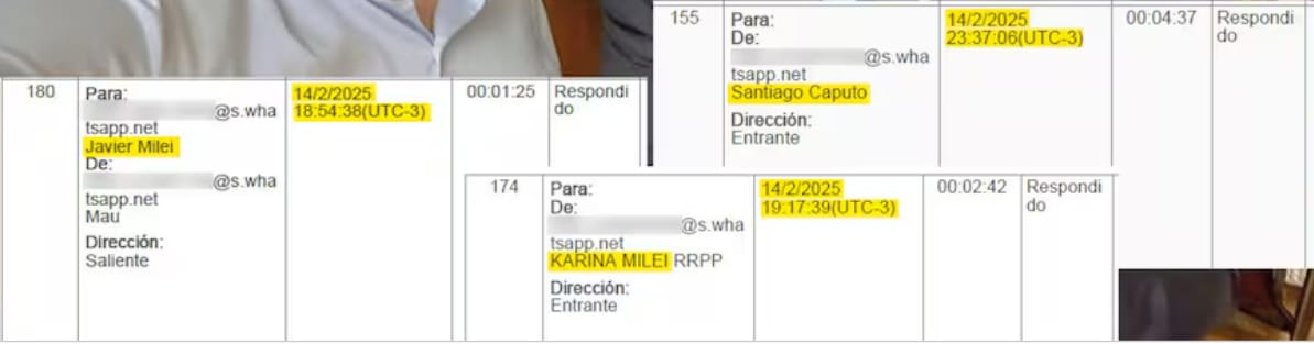 6:54 PM: Novelli, reportedly in the US near Hayden Davis, calls Milei directly.