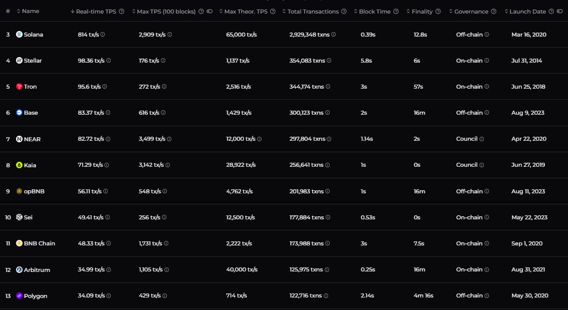 Fastest blockchains right now: