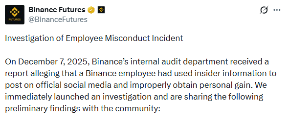 The tweet was quickly deleted, and Binance’s internal audit team flagged it immediately. They confirmed an employee abused their access to pump their own bag.