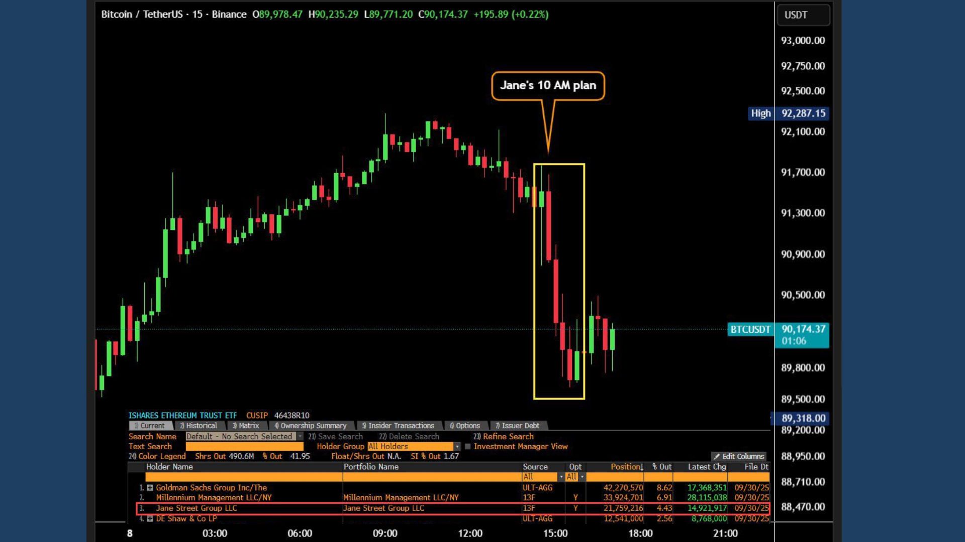 (Fun fact: Jane Street currently holds $2.5B of BlackRock’s IBIT ETF. They are buying the dip they created.)