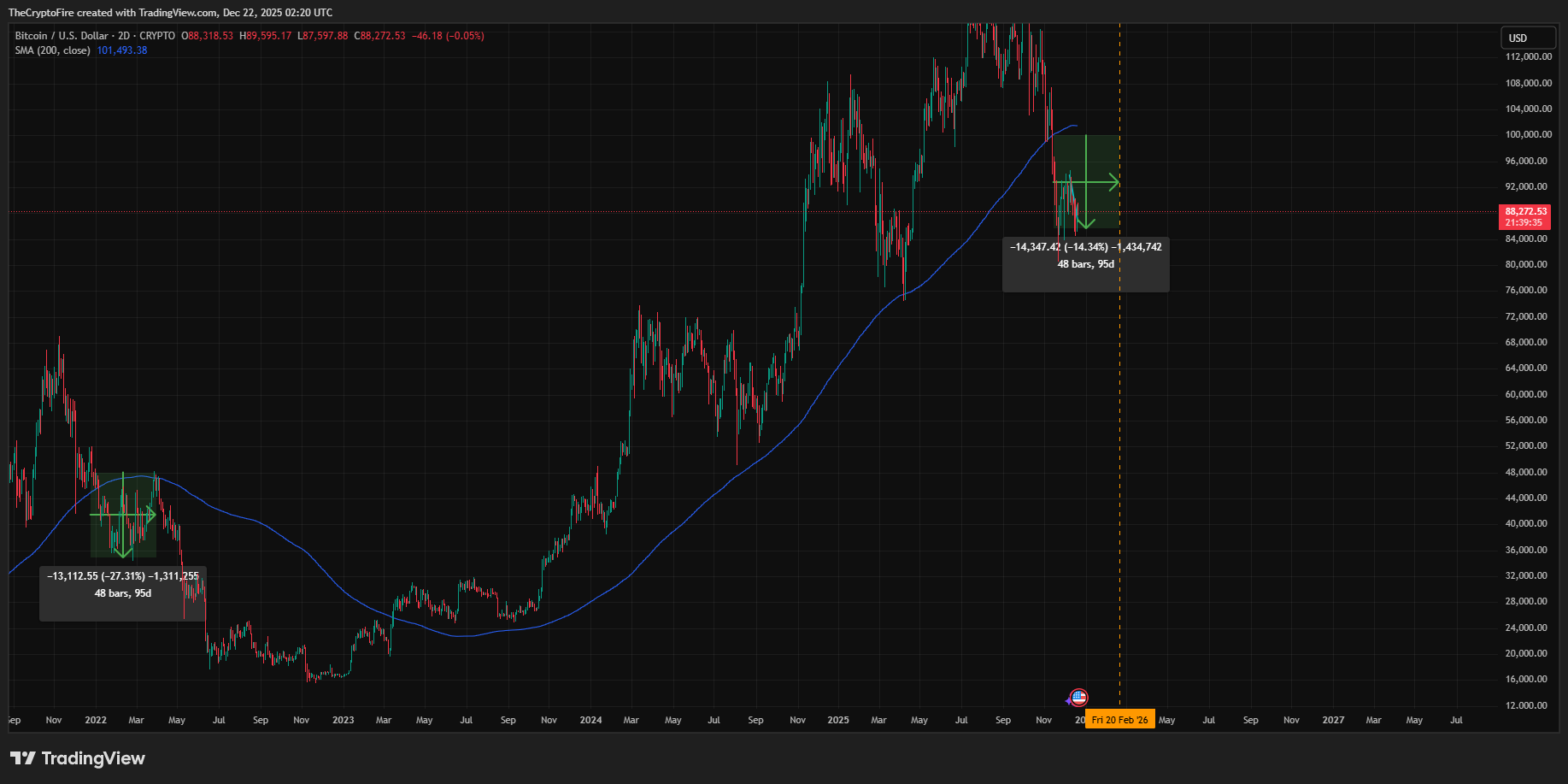 So it would be a downtrend similar to 2022, when BTC broke below the MA200. Technically, BTC has already broken it, but based on my previous macro and cycle analysis, this does not yet confirm the start of a full bearish phase.