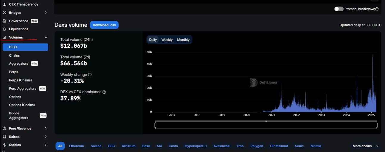 a. DeFiLlama’s Narrative Tracker → DeFiLlama is an incredibly useful tool for understanding the current trends, and it can give you a quick snapshot of where the market is heading.