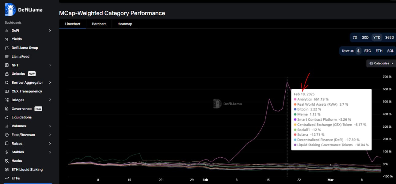 Review the Dashboard: You’ll see categories like Analytics, RWA, Bitcoin, Meme and more. This shows which sectors are currently getting the most attention.