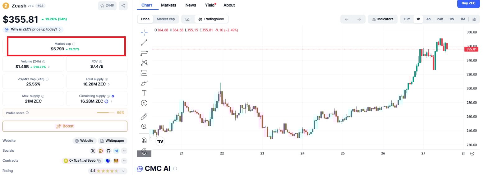 The tweet went viral in minutes, setting off a FOMO storm across crypto Twitter. Liquidity flooded in, traders rushed to chase the breakout, and for the first time in three years, ZEC’s market cap topped $5 billion.