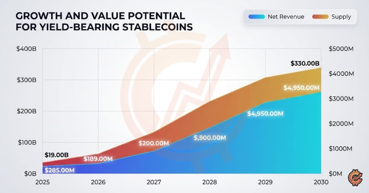 Fact: The supply of yield generating stablecoins sits at roughly 19 billion USD right now. It is expected to grow 80% annually to reach 330 billion USD by 2030.