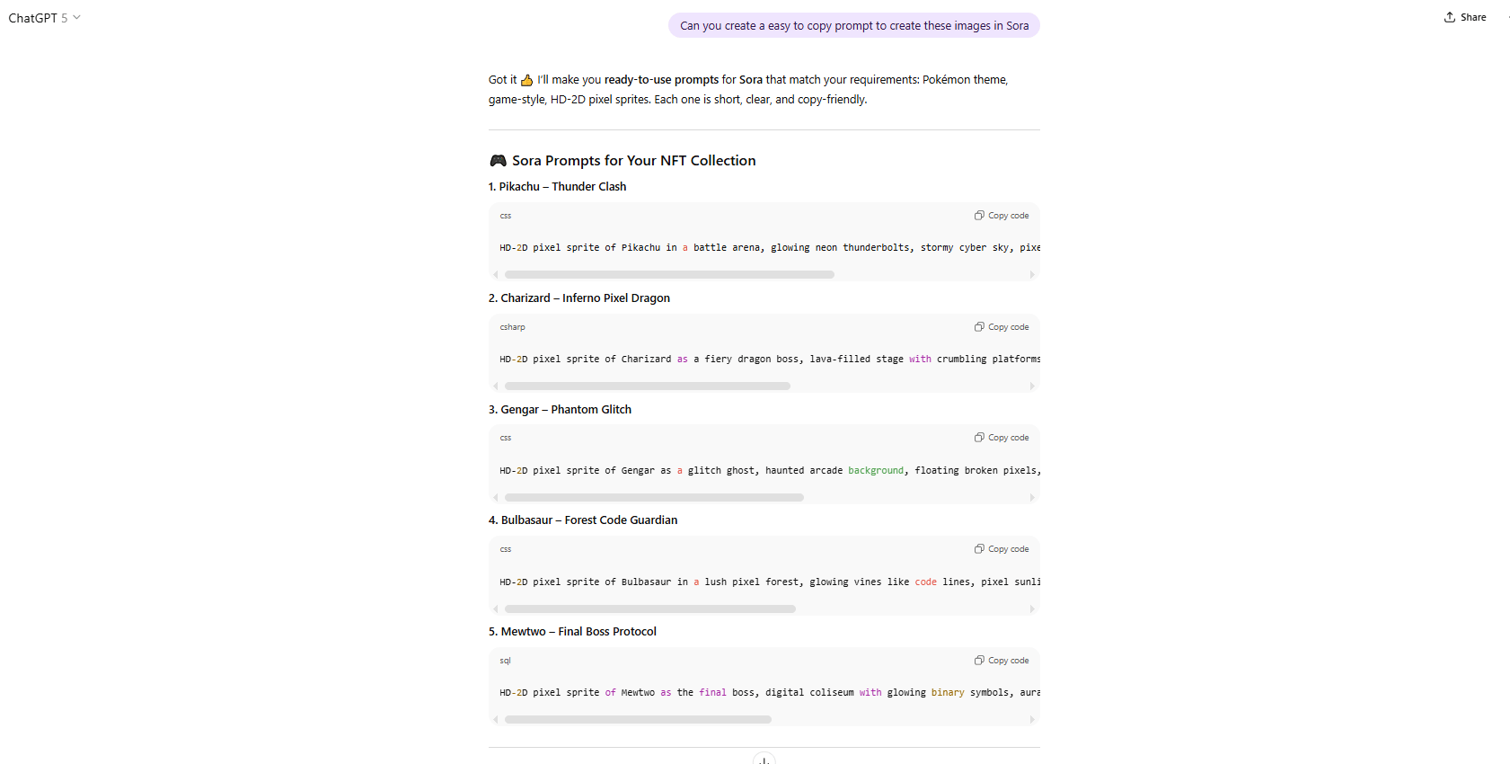 - HD-2D pixel sprites Once you have your theme, just ask the model to generate copy-ready prompts for each image: